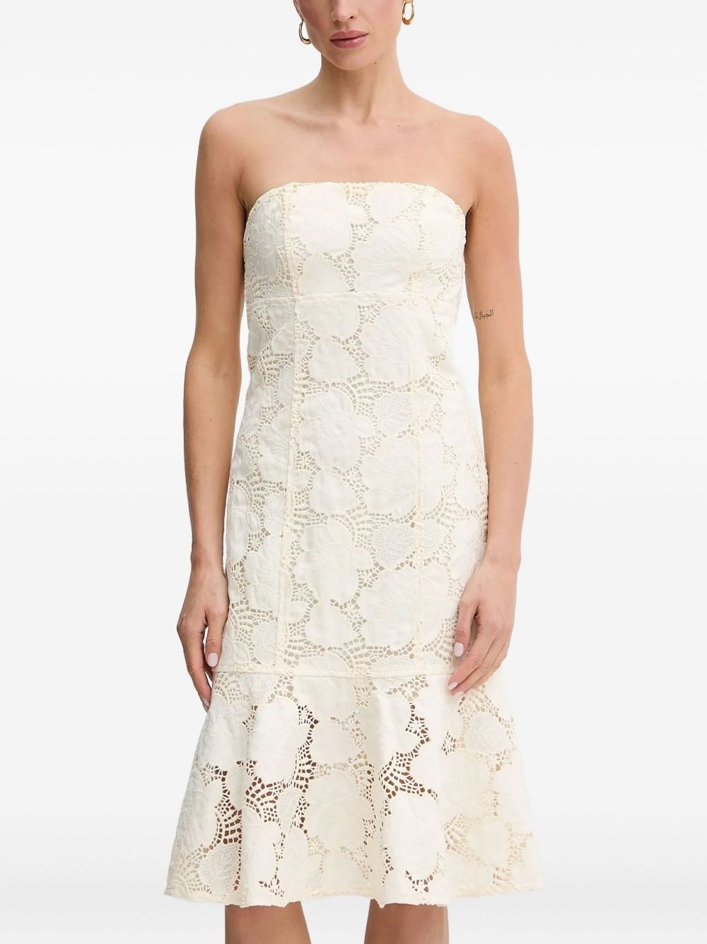 Maisy dress Highlights - Off-white - Floral lace - Strapless neckline - Flared hem Imported Composition Fabric 100% Washing instructions Read Manufacturer Guidelines