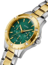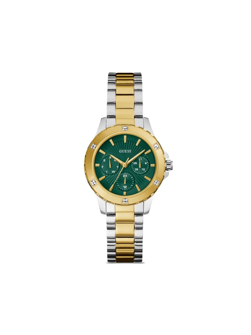 Mist quartz 35mm Highlights - 35mm - Silver-tone/gold-tone - Stainless steel - Round face - Geometric dial - Baton hands - Date indication - Chronograph counters - Crystal-encrusted bezel - Screw-down crown - Adjustable link bracelet - Folding clasp - Quartz movement - This item comes with a standard one-year warranty from the boutique. Imported