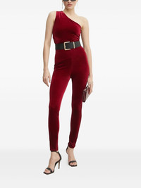 one-shoulder velvet jumpsuit Highlights - Dark red - Velvet texture - One-shoulder neckline - Ruched detailing - Fitted bodice Imported Composition Fabric 100% Washing instructions Read Manufacturer Guidelines
