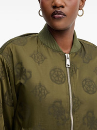 patterned bomber jacket Highlights - Olive green - Patterned - Zip fastening - Ribbed hem - Ribbed cuffs - Front pockets Imported Composition Fabric 100% Washing instructions Read Manufacturer Guidelines