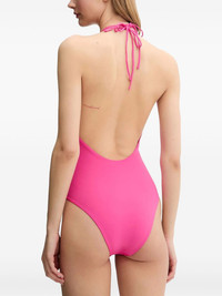 rhinestone-embellished halter swimsuit Highlights - Hot pink - Rhinestone embellishments - Halter neck - Logo lettering - Low back - Tie fastening - Be mindful to try on swimwear over your own garments. Imported Composition Polyamide 85%, Elastane 15% Washing instructions Read Manufacturer Guidelines