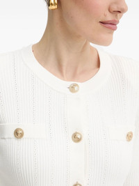 ribbed buttoned cardigan Highlights - White - Ribbed knit - Gold buttons - Round neck - Long sleeves - Patch pockets Imported Composition Viscose 63%, Polyamide 37% Washing instructions Read Manufacturer Guidelines