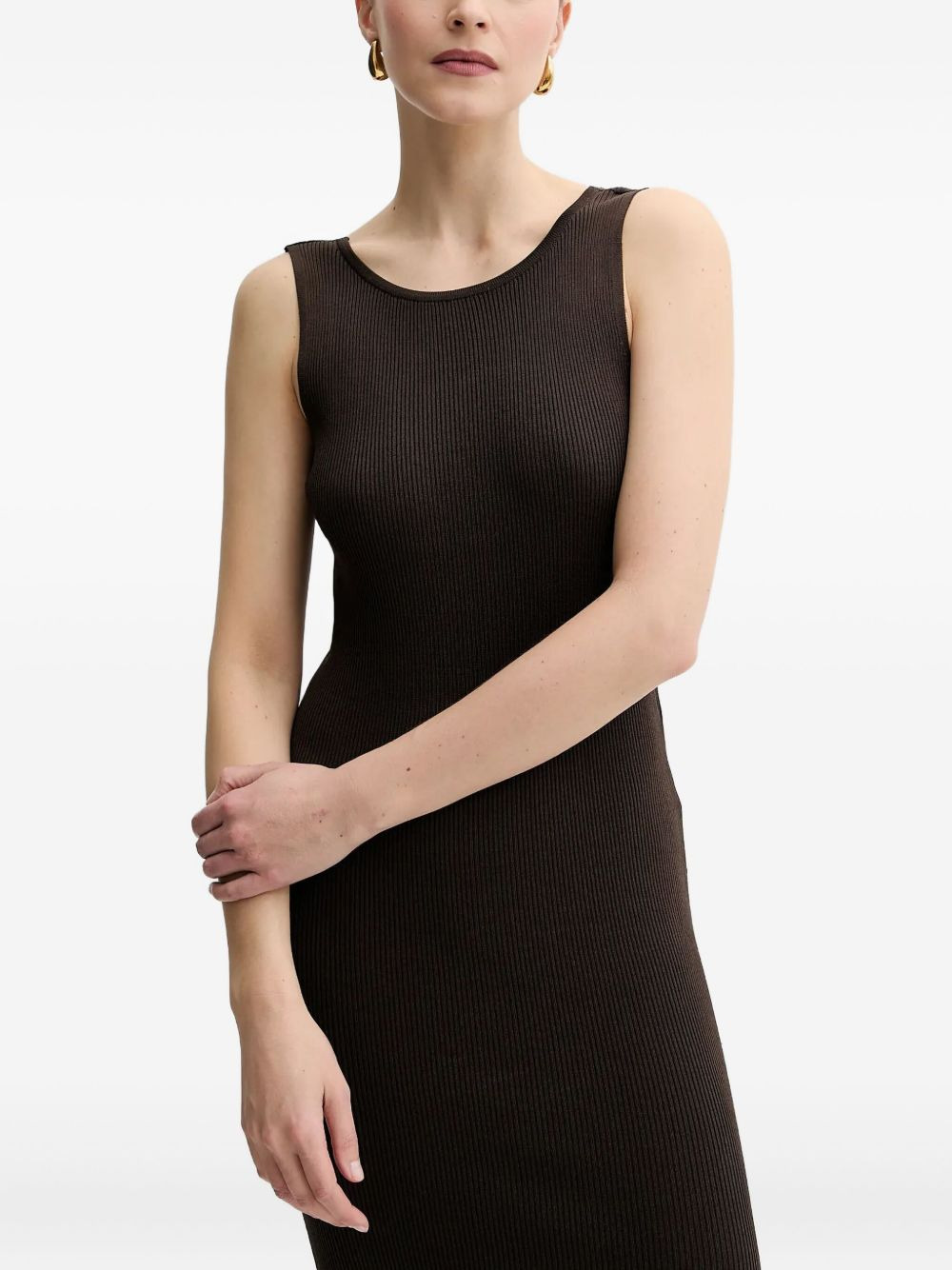 ribbed open-back dress Highlights - Dark-brown - Ribbed texture - Sleeveless - Open back - Twist detail - Side split Imported Composition Viscose 80%, Polyamide 20% Washing instructions Hand Wash