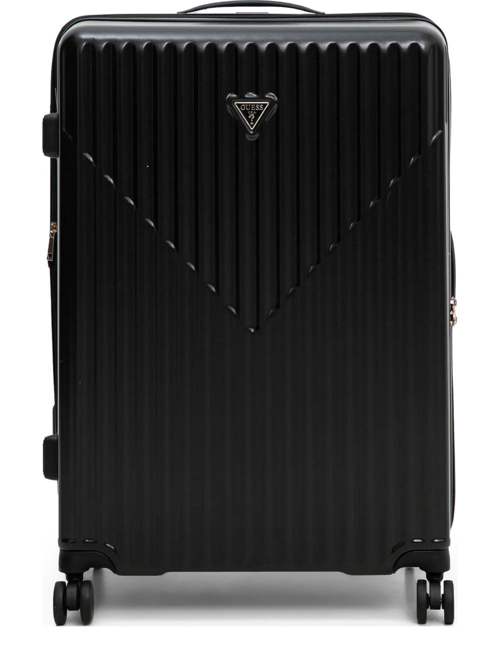 ridged hard-shell trolley Highlights - Black - Embossed ribbed design - Retractable top handle - Four multi-directional wheels - Logo plaque detail Imported Composition Outer: Polyester 100% SIZE & FIT Measurement DEPTH 8.46 in(21.5 cm) HEIGHT 21.85 in(55.5 cm) WIDTH 14.76 in(37.5 cm)