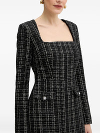square-neck mini dress Highlights - Black and white - Check pattern - Square neck - Long sleeves - Flap pockets Imported Composition Outer: Polyester 95%, Metallised Fibres 5% Lining: Polyester 100% Washing instructions Read Manufacturer Guidelines