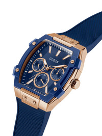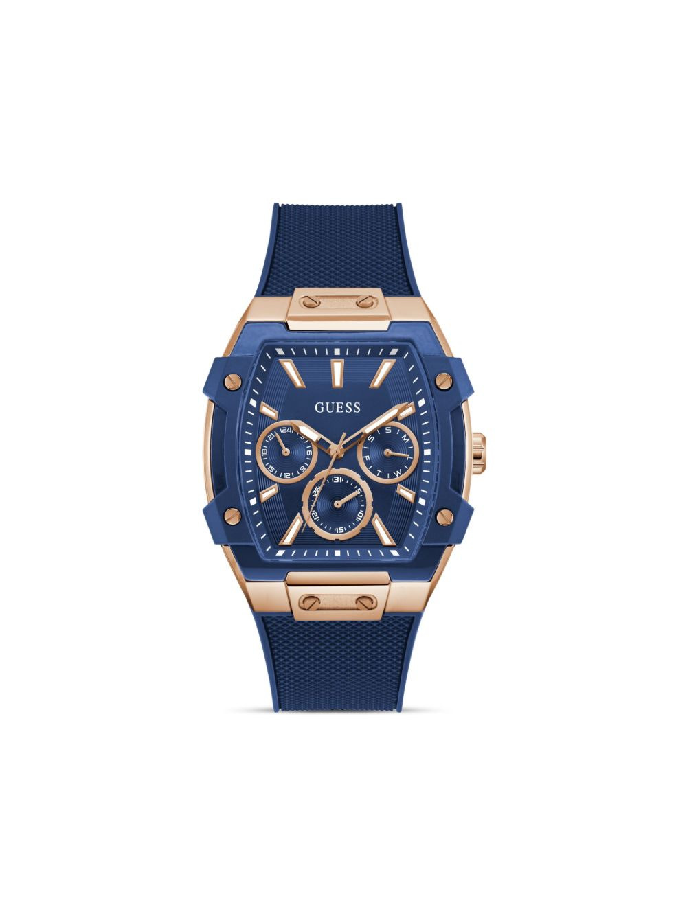 stainless steel 44mm Highlights - Blue dial - Rose gold-tone case - Rectangular case shape - 44mm case size - Multi-function dial - Quartz movement - Rose gold-tone crown - Water resistance up to 50m/5 atm - This item comes with a standard one-year warranty from the boutique. Imported Composition Recycled Steel 100%, Silicone 100% SIZE & FIT Measurement DIAMETER 1.73 in(4.4 cm)