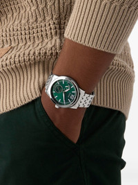 stainless steel 44mm Highlights - Green dial - Stainless steel bracelet - Round case - 44mm case size - Japan quartz movement - Date subdial - Silver-tone bezel - Water resistance up to 50m/5 atm - This item comes with a standard one-year warranty from the boutique. Imported Composition stainless steel 100% SIZE & FIT Measurement DIAMETER 1.73 in(4.4 cm)