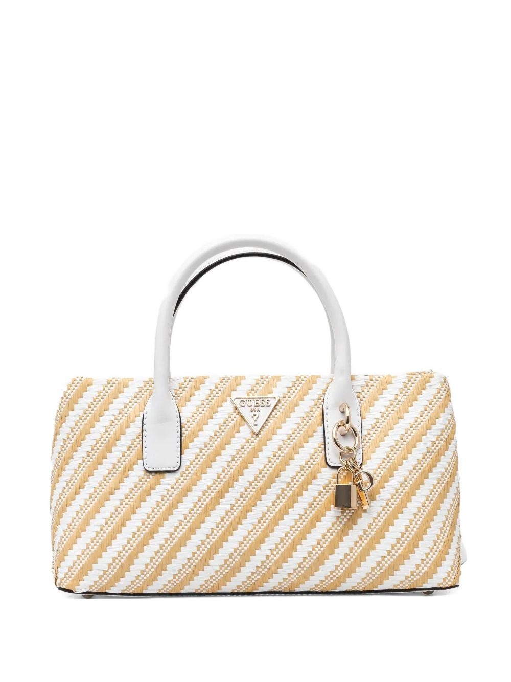 striped tote bag Highlights - White - Top handles - Detachable shoulder strap - Metal logo plaque - Padlock charm Imported Composition Outer: Polypropylene 100% Lining: Polyester 100% SIZE & FIT Measurement DEPTH 3.93 in(10 cm) HEIGHT 6.69 in(17 cm) WIDTH 11.81 in(30 cm) HANDLE 13.77 in(35 cm)