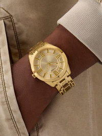 Sun Champ 44mm Highlights - 44mm - Stainless steel case - Round face - Gold-tone - Roman numeral dial - Baton hands - Sweeping second hand - Stainless steel link bracelet - Folding clasp - Water resistance up to 50m/5 atm - This item comes with a standard one-year warranty from the boutique. Imported Composition stainless steel 100% SIZE & FIT Measurement DIAMETER 1.73 in(4.4 cm)