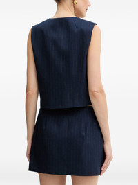 V-neck pinstripe vest Highlights - Dark blue - Pinstripe - V-neck - Sleeveless - Button fastening - Cropped Imported Composition Outer: Polyester 67%, Viscose 30%, Elastane 2% Lining: Polyester 97%, Elastane 3% Washing instructions Machine Wash