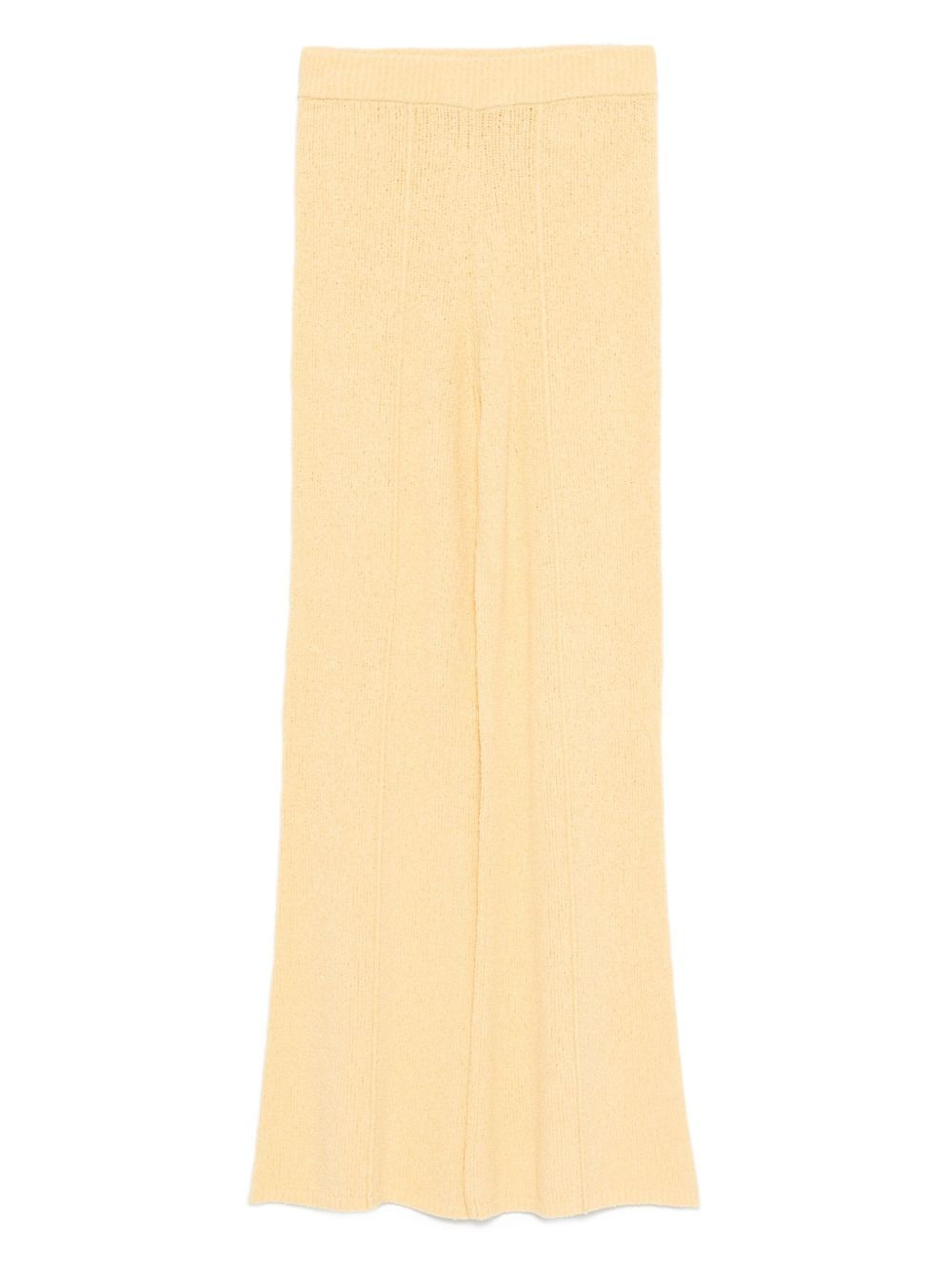 boucle flared trousers Highlights - Yellow - Boucle texture - Front centre pleat - Back centre pleat - Elastic waistband - Flare leg Imported Composition Organic Cotton 85%, Polyester 15% Washing instructions Hand Wash