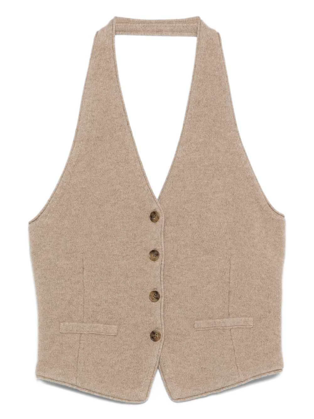 halterneck vest Highlights - Beige Imported Composition Cashmere 100% SIZE & FIT Model measurements Height 5 ft 10 in(1.79 m) Bust/Chest 31.88 in(81 cm) Hips 35.43 in(90 cm) Waist 23.62 in(60 cm) Washing instructions Hand Wash