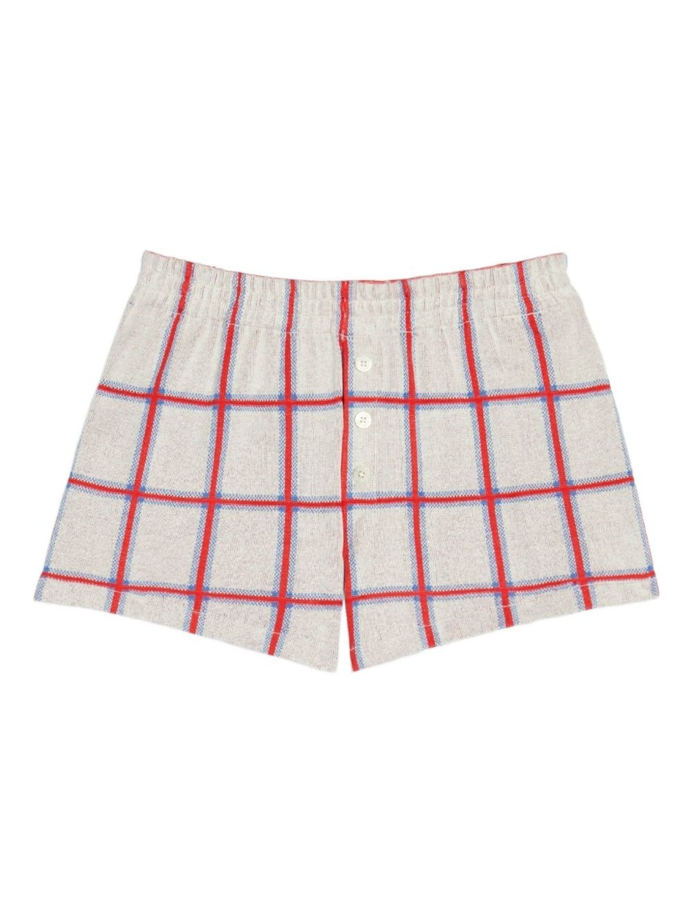 Picnic shorts Highlights - White - Elasticated waistband - Decorative button detailing - Check pattern Imported Composition Silk 70%, Linen/Flax 30% Washing instructions Read Manufacturer Guidelines