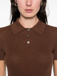 Shrunken knitted polo top Highlights - Brown - Open knit - Short sleeve - Button placket - Polo collar - Ribbed trims Imported Composition Cashmere 100% SIZE & FIT Model measurements Height 5 ft 10 in(1.78 m) Bust/Chest 33.46 in(85 cm) Hips 36.22 in(92 cm) Waist 23.22 in(59 cm) FittingInformation Designed for a slim fit that sits just away from the body offering a close yet comfortable fit Made with a midweight knit, this piece offers some stretch Washing instructions Hand Wash