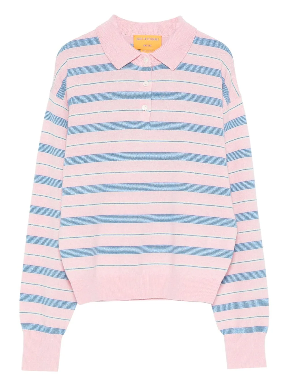 striped knitted polo top Highlights - Pink - Striped - Collared - Button placket - Long sleeves Imported Composition Cashmere 100% Washing instructions Hand Wash