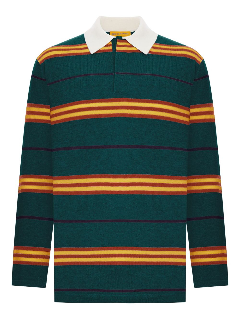 striped-pattern long-sleeve polo shirt Highlights - Green - Horizontal stripes - Long sleeves - Polo collar - Button placket - Cashmere Imported Composition Cashmere 100% Washing instructions Read Manufacturer Guidelines