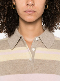 striped polo shirt Highlights - Brown - Front button placket - Long sleeves Imported Composition Cashmere 100% SIZE & FIT Model measurements Height 5 ft 10 in(1.79 m) Bust/Chest 31.88 in(81 cm) Hips 35.43 in(90 cm) Waist 23.62 in(60 cm) Washing instructions Hand Wash