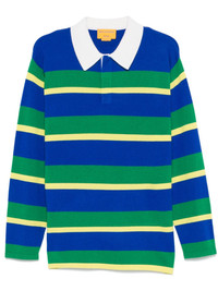 striped rugby polo shirt Highlights - Cobalt blue - Short front button fastening - Short side slits - Ribbed cuffs - When buying this unisex item, keep in mind that it is graded in standard men's sizing. Imported Composition Cashmere 100% Washing instructions Hand Wash