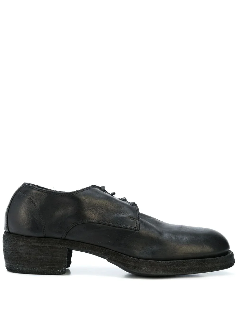 round toe lace up derby shoes Black horse leather round toe lace up derby shoes from Guidi featuring a round toe, a lace fastening, a low heel and a branded insole. Made in Italy Composition Horse Leather 100% SIZE & FIT Measurement Sole height 0.59 in(1.5 cm) HEIGHT 1.77 in(4.5 cm)