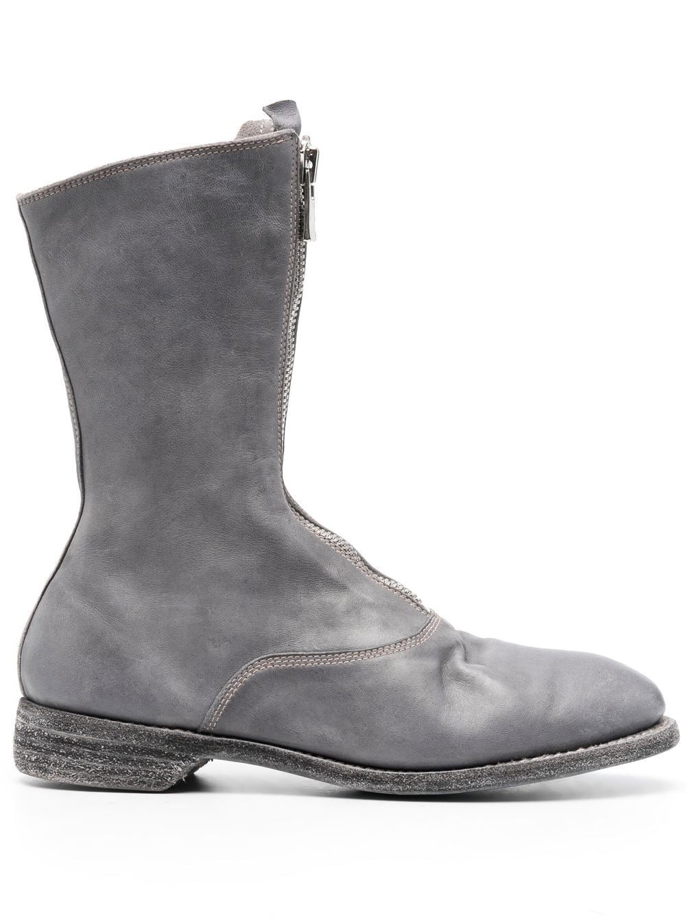 zip-up leather boots cool grey calf leather round toe front zip fastening low block heel calf leather Made in Italy Composition Outer: Calf Leather 100% Lining: Calf Leather 100% Sole: Calf Leather 100% SIZE & FIT Measurement HEEL 0.98 in(2.5 cm) CIRCUMFERENCE 9.05 in(23 cm) HEIGHT 7.87 in(20 cm)