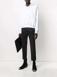 embroidered back logo hoodie White cotton blend embroidered back logo hoodie from Haider Ackermann featuring a drawstring hood, long sleeves and a straight hem. Imported Composition Outer: Cotton 84%, Nylon 14%, Spandex/Elastane 2% Lining: Cotton 50%, Rayon 50% SIZE & FIT Model measurements Height 6 ft 2 in(1.87 m) Bust/Chest 36.41 in(92.5 cm) Hips 37 in(94 cm) Waist 29.52 in(75 cm) FittingInformation This piece fits true to size. We recommend you get your regular size Cut for a relaxed fit Made with a mid-weight stretch fabric Washing instructions Dry Clean Only