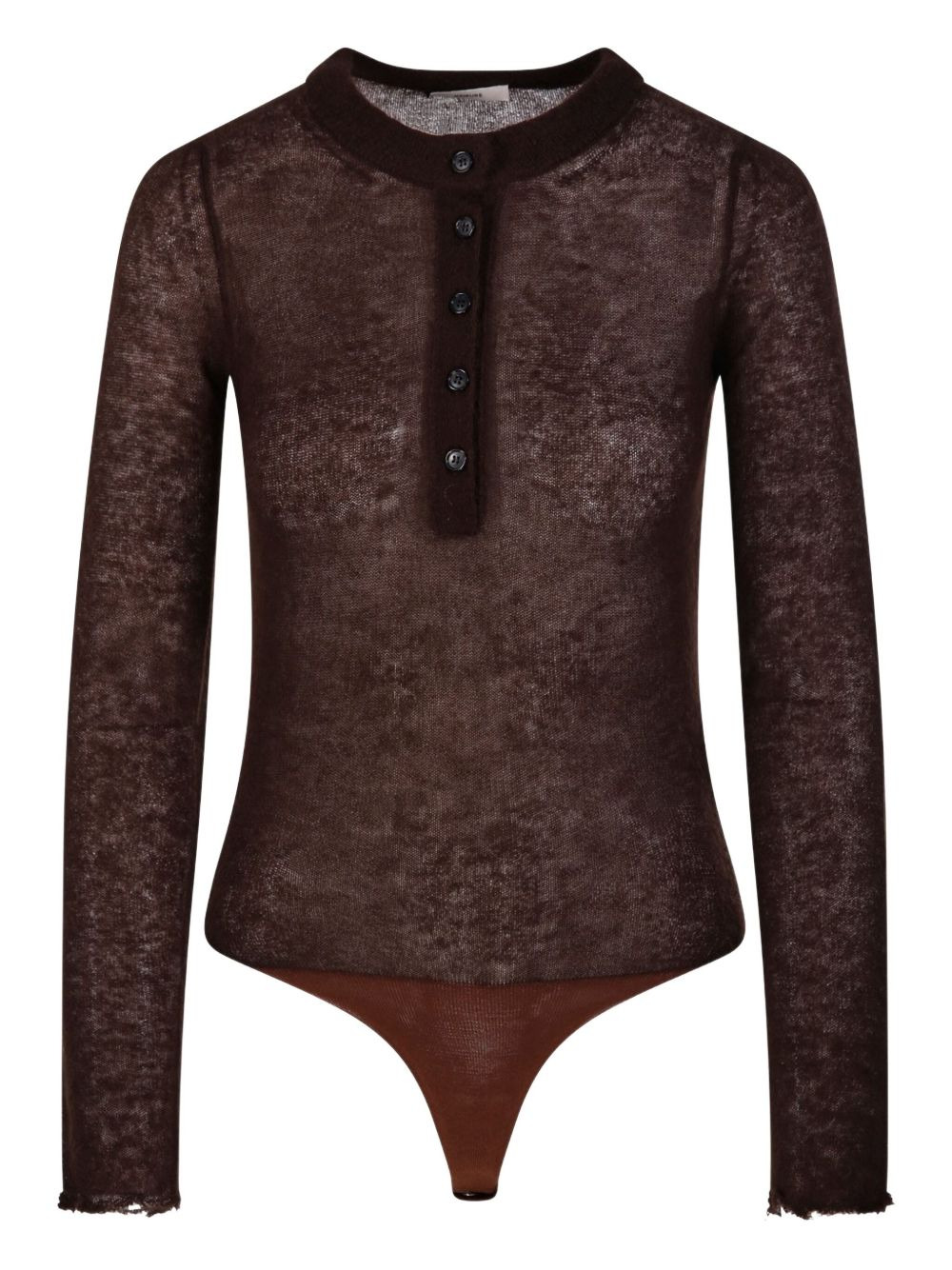 button-front long-sleeve bodysuit Highlights - Brown - Button placket - Long sleeves - Raw-edge sleeve - Just a reminder that this piece must be tried on over your own garments. Made in Italy Composition Fabric 100%