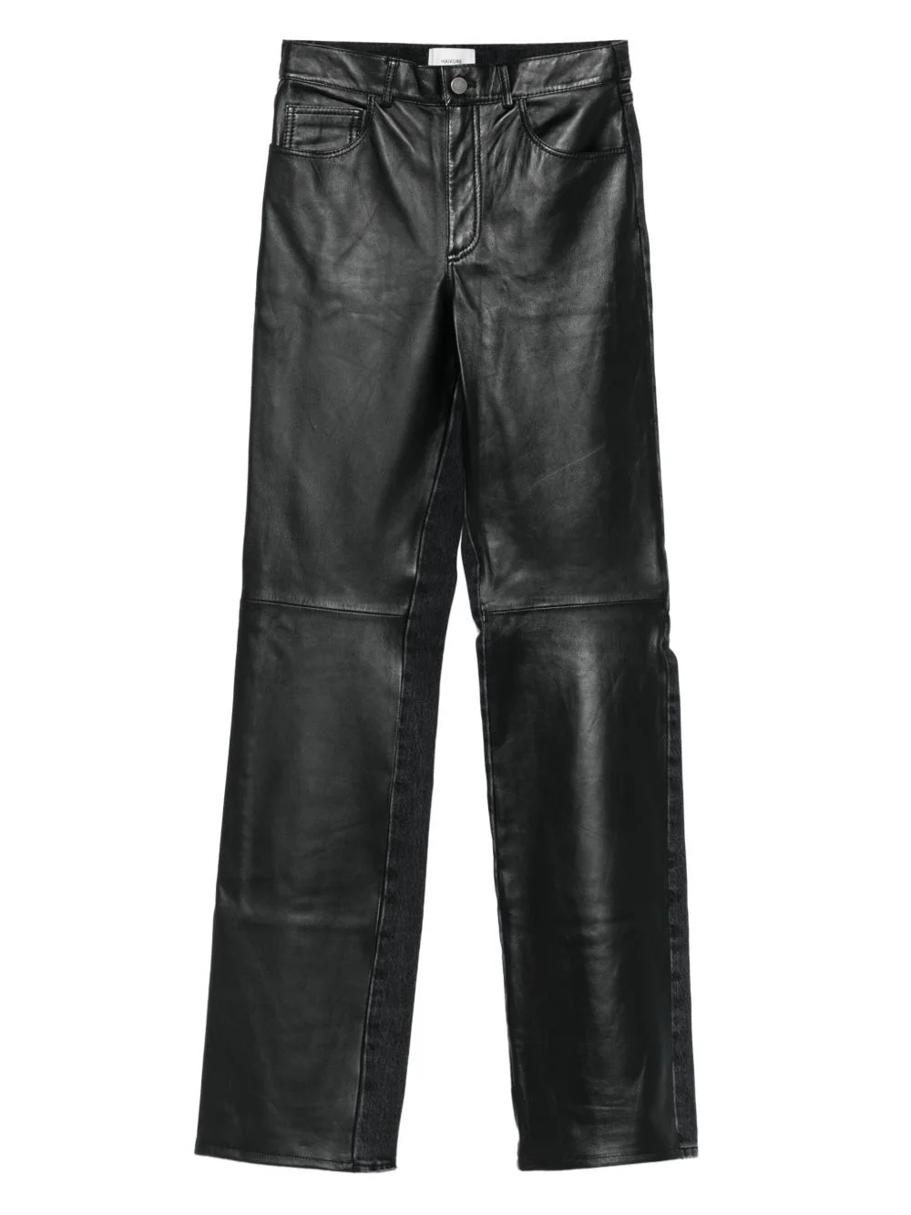 leather-panel trousers Highlights - Black - Denim back-panel - Leather front-panel - Five-pocket design - Belt loops - Button fastening Made in Italy Composition Cotton 100%, Leather 100% Washing instructions Read Manufacturer Guidelines