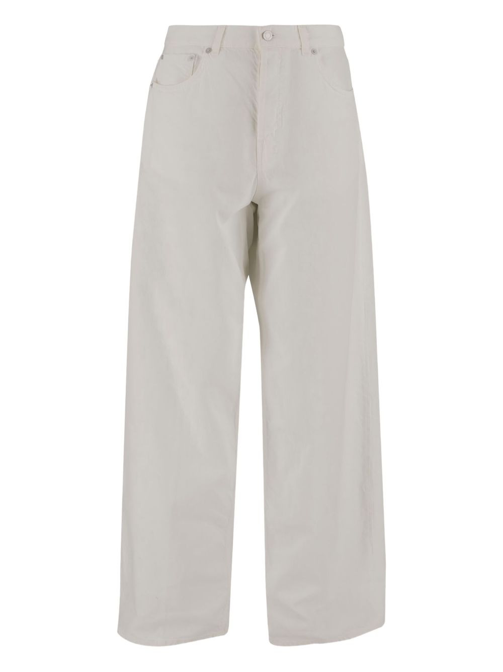 logo-patch jeans Highlights - Light beige - Concealed fly and button fastening - Classic five pockets - Belt loops Made in Italy Composition Cotton 85%, Linen/Flax 15% Washing instructions Read Manufacturer Guidelines