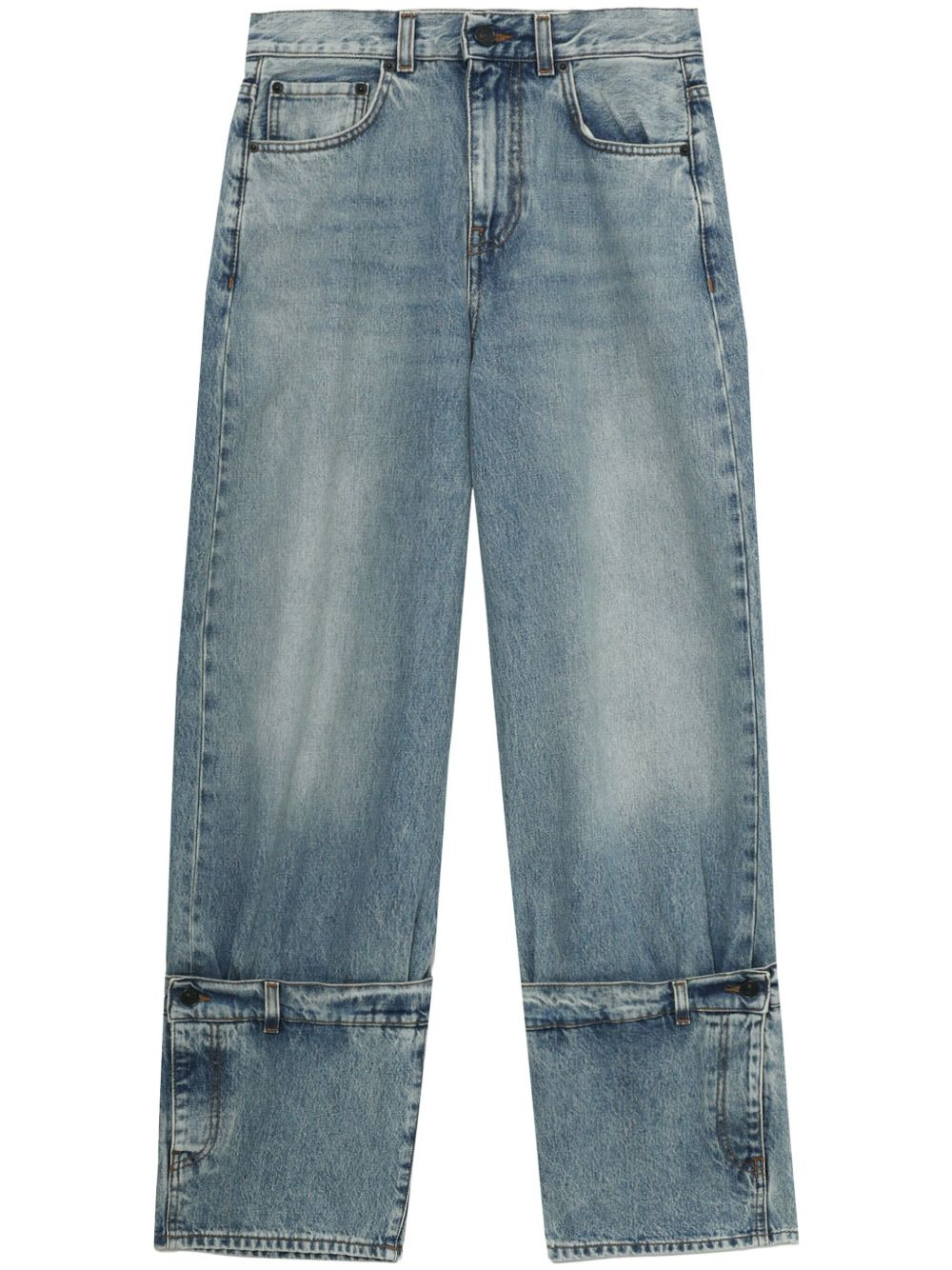 logo-patch straight jeans Highlights - Powder blue - Cotton - Washed denim - Logo patch to the rear - Front button fastening - Belt loops - Classic five pockets - Straight leg Made in Italy Composition Cotton 100% Washing instructions Read Manufacturer Guidelines