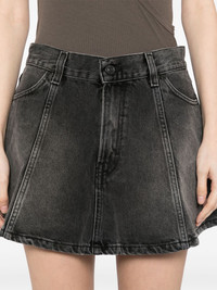 Margaux denim skirt Highlights - Black - Cotton - Denim - Front button and zip fastening - Belt loops - Two side slash pockets - Two rear patch pockets - Logo patch to the rear - Faded effect - Flared hem Made in Italy Composition Cotton 100% SIZE & FIT Model measurements Height 5 ft 9 in(1.76 m) Bust/Chest 31.1 in(79 cm) Hips 35.03 in(89 cm) Waist 24.4 in(62 cm) FittingInformation This mini-length skirt is intended to be worn just below the waist Sturdy and hard-wearing, this denim piece offers no stretch Washing instructions Machine Wash