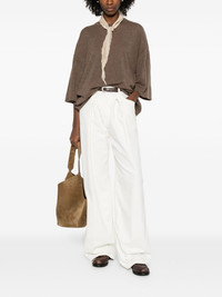 pleated denim trousers Highlights - Off white - Pleated detailing - Wide leg - Front button fastening - Belt loops - Side seam pockets Made in Italy Composition Cotton 85%, Linen/Flax 15% Washing instructions Hand Wash
