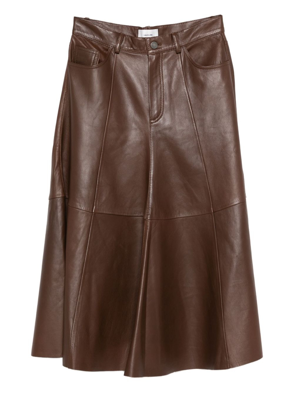 Serenity leather midi skirt Highlights - Brown - Leather - Panelled design - Midi length - A-line silhouette - Concealed zip and button fastening Imported Composition Leather 100% SIZE & FIT Model measurements Height 5 ft 10 in(1.78 m) Bust/Chest 33.46 in(85 cm) Hips 36.22 in(92 cm) Waist 23.22 in(59 cm) Washing instructions Specialist Cleaning