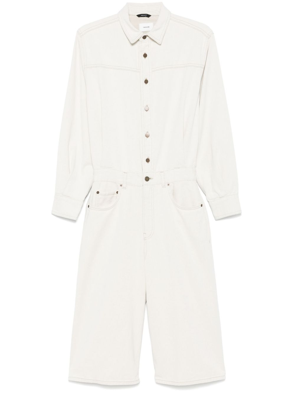 Tonya denim jumpsuit Highlights - Almond beige - Front button fastening - Concealed fly and button fastening Made in Italy Composition Cotton 100% SIZE & FIT Model measurements Height 5 ft 11 in(1.8 m) Bust/Chest 31.49 in(80 cm) Hips 35.82 in(91 cm) Waist 24.8 in(63 cm) FittingInformation Designed for a loose fit at the chest and waist with a close fit on the hips Sturdy and hard-wearing, this denim piece offers no stretch Washing instructions Machine Wash