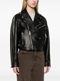 Chiodo biker jacket Highlights - Black - Off-centre front zip fastening - Side zip fastening - Zip-fastening chest pocket - Two side zip-fastening pockets Made in Italy Composition Lining: Viscose 50%, Acetate 50% Outer: Calf Leather 100% SIZE & FIT Model measurements Height 5 ft 9 in(1.75 m) Bust/Chest 31.88 in(81 cm) Hips 34.64 in(88 cm) Waist 24.01 in(61 cm) FittingInformation Designed for a boxy fit, intended for a loose fit throughout Cropped in length Firm leather offering little flexibility to maintain its durability and sturdiness Washing instructions Specialist Cleaning