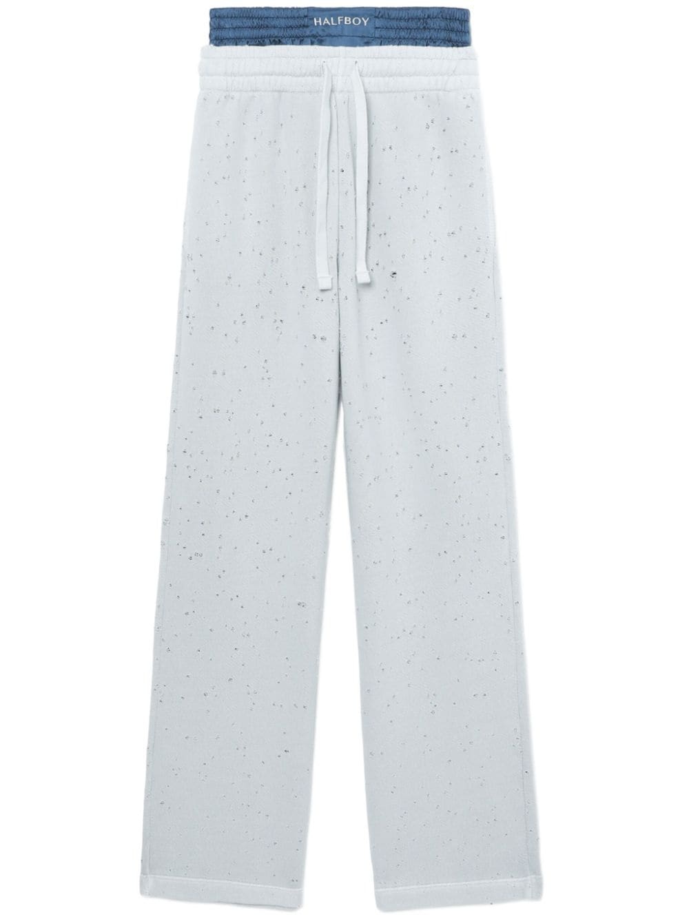 layered wide-leg track pants Highlights - Light grey/blue - Cotton-silk blend - Layered design - Logo waistband - Elasticated drawstring waistband - Side pouch pockets - Wide leg Imported Composition Cotton 100%, Silk 100%
