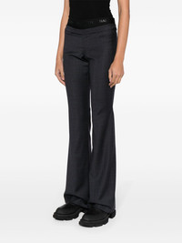 logo-waistband layered-detail flared trousers Highlights - Grey - Merino wool - Layered details - Logo waistband - Concealed front fastening - Flared design - Side welt pocket Made in Italy Composition Merino 100% SIZE & FIT Model measurements Height 5 ft 10 in(1.77 m) Bust/Chest 31.49 in(80 cm) Hips 35.43 in(90 cm) Waist 25.19 in(64 cm) FittingInformation Designed with a flared hem, these trousers allow for a close fit at the waist with a slim fit over the leg and widening towards the hem The elasticated waist allows for a comfortable fit Made from a midweight non-stretch fabric This piece fits true to size – take your usual size