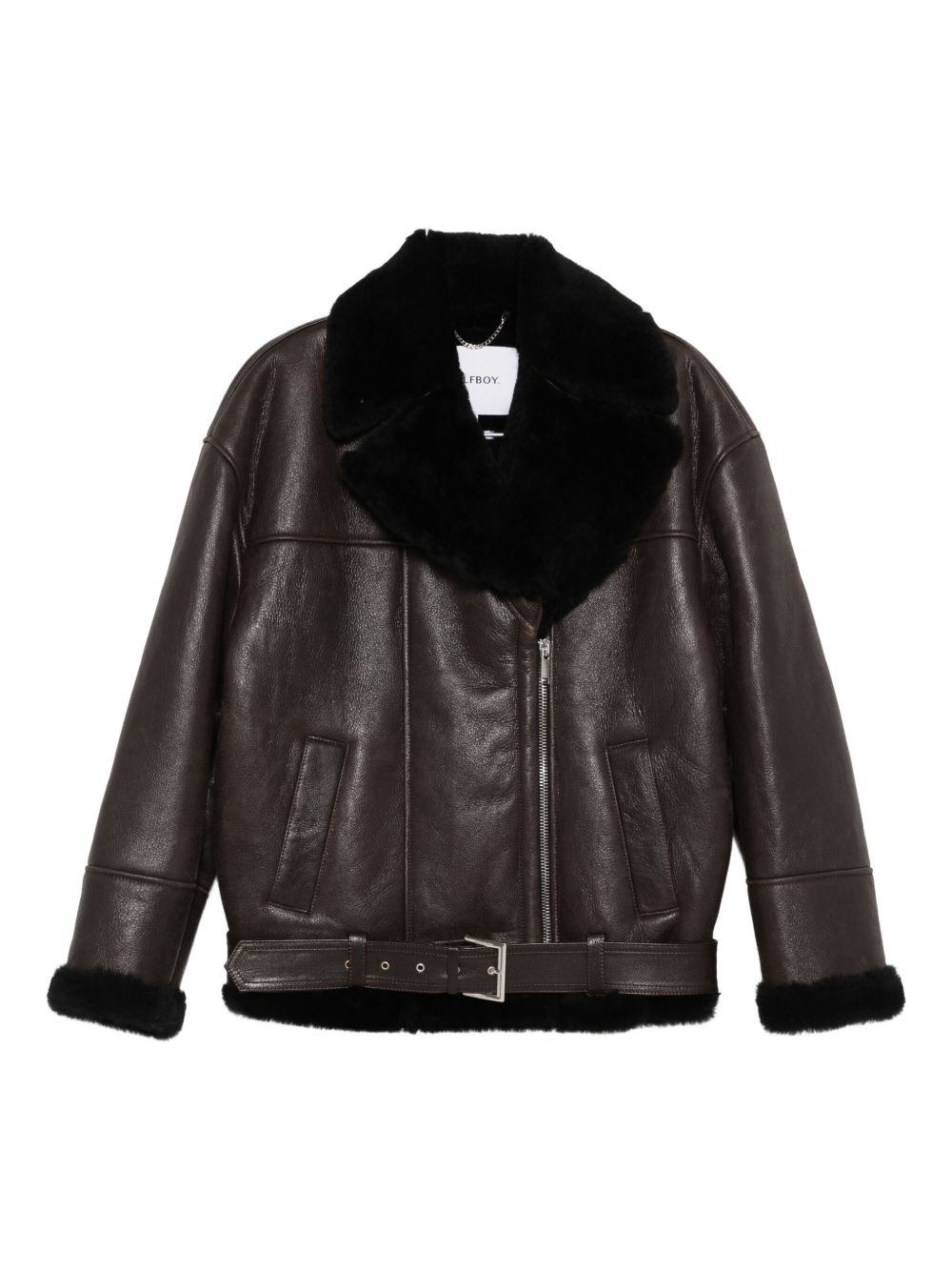 shearling-collar leather jacket
