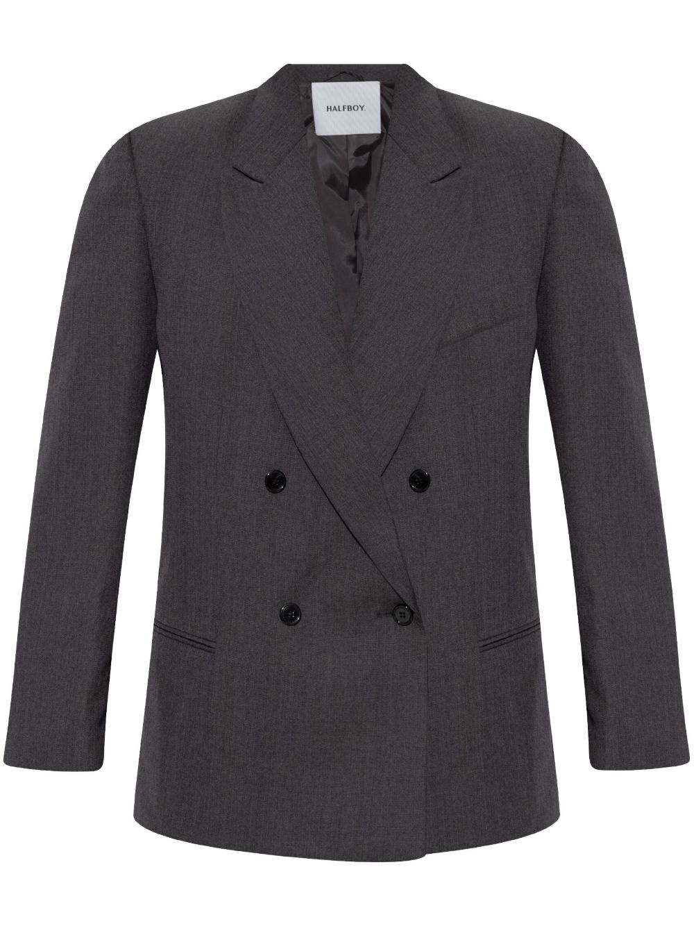 virgin-wool double-breasted blazer Highlights - Grey - Virgin wool - Double-breasted button fastening - Peak lapels - Chest welt pocket - Two front jetted pockets - Buttoned cuffs - Straight hem Made in Italy Composition Virgin Wool 100% Washing instructions Read Manufacturer Guidelines