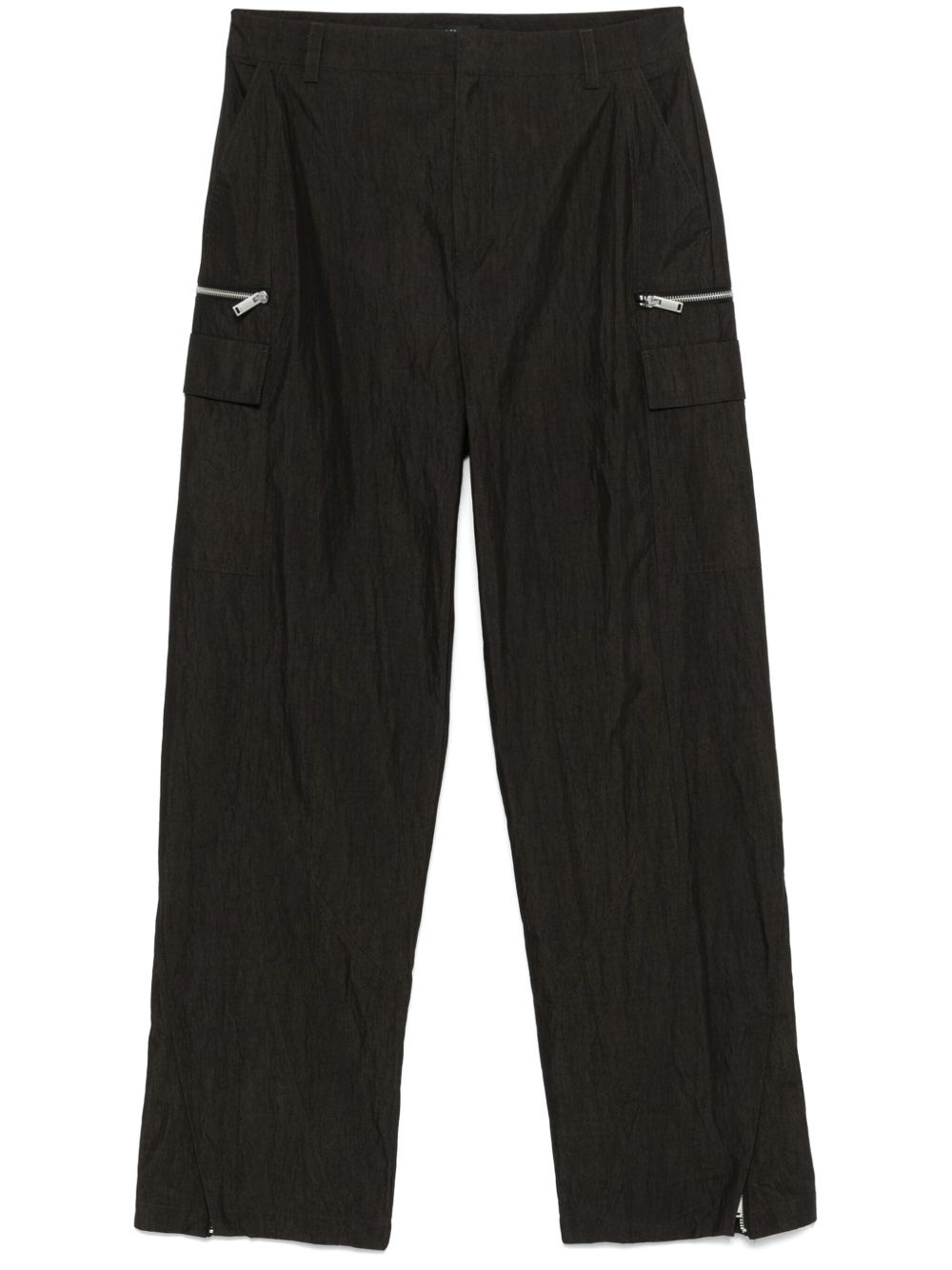 cargo trousers Highlights - Dark grey - Concealed front button, hook and zip fastening - Two side slash pockets - Two rear jetted pockets Imported Composition Cotton 65%, Nylon 35% SIZE & FIT Model measurements Height 6 ft 2 in(1.87 m) Bust/Chest 37.79 in(96 cm) Hips 37.79 in(96 cm) Waist 30.31 in(77 cm) FittingInformation Designed for a straight-leg, allowing for an unrestricted and comfortable fit over the leg The zipped hems allow you to adjust the fit throughout the calves and ankles Made from a midweight non-stretch fabric
