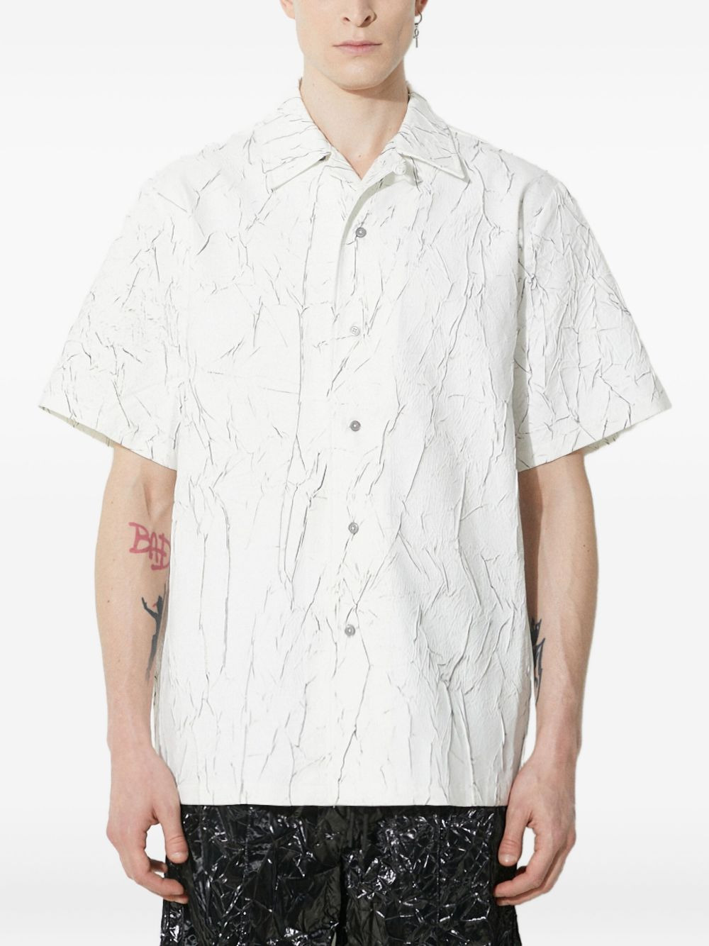 crackle-print short-sleeve shirt Highlights - White - Crackle print - Short sleeves - Button fastening - Collared neck Imported Composition Viscose 50%, Nylon 50% Washing instructions Read Manufacturer Guidelines