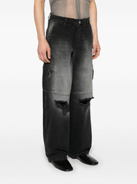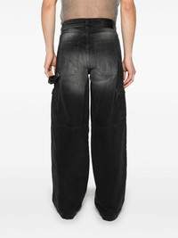 distressed cargo jeans Highlights - Black - Concealed fly and button fastening - Belt loops - Two side slash pockets - Two side cargo pockets Imported Composition Cotton 100% SIZE & FIT Model measurements Height 6 ft 1 in(1.85 m) Bust/Chest 35.82 in(91 cm) Hips 37.79 in(96 cm) Waist 29.13 in(74 cm) FittingInformation Designed with a wide leg, these jeans offer a loose and roomy fit Sturdy and hard-wearing, this denim piece offers no stretch