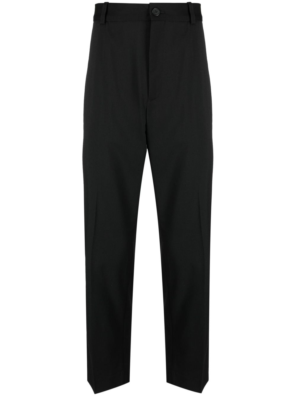 mid-rise tailored-cut trousers Highlights - Black - Belt loops - Tailored cut - Button fly fastening - Rear jetted pocket Imported Composition Polyester 54%, Virgin Wool 44%, Elastane 2% SIZE & FIT FittingInformation Designed for a slim tapered leg, offering a close fit that sits just away from the leg with a closer fit towards the ankle Made from a midweight stretch fabric, this piece offers elasticity and flexibility when worn Washing instructions Machine Wash