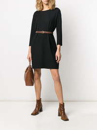 boat neck shift dress Black virgin wool boat neck shift dress from Harris Wharf London featuring long sleeves, a relaxed shape and a short length. POSITIVELY CONSCIOUS: Harris Wharf London scores 3 out 5 by independent ethical brand rating agency Good On You. Its products are made to order and manufactures locally to reduce its carbon footprint. It does not use fur, leather, down, exotic animal skin or angora. Made in Italy Composition Virgin Wool 100% SIZE & FIT Model measurements Height 5 ft 11 in(1.8 m) Bust/Chest 31.1 in(79 cm) Hips 34.25 in(87 cm) Waist 22.83 in(58 cm) FittingInformation This piece fits true to size. We recommend you get your regular size Cut for a slim fit Made with a mid-weight fabric