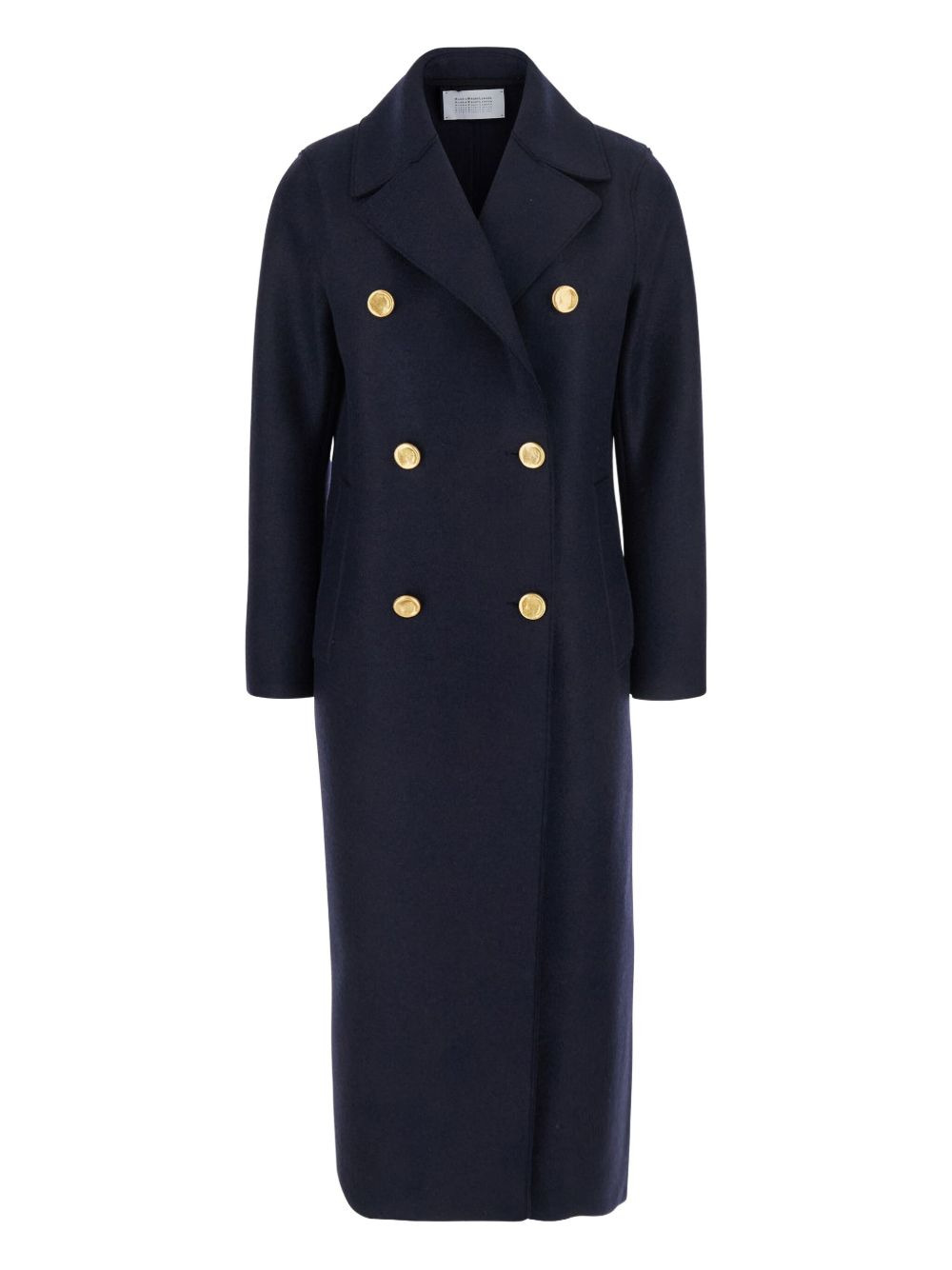double-breasted coat Highlights - Navy blue - Double-breasted fastening - Long sleeves - Straight hem Made in Italy Composition Virgin Wool 100% Washing instructions Read Manufacturer Guidelines