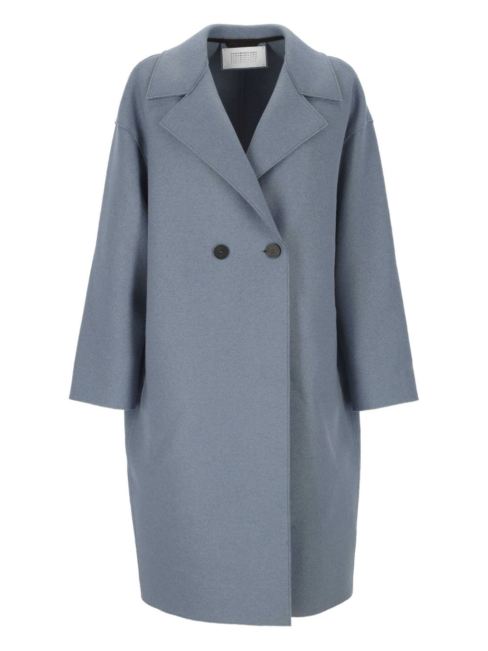 double-breasted lapel coat Highlights - Grey - Double-breasted fastening - Lapel collar - Three-quarter sleeves - Straight hem Made in Italy Composition Virgin Wool 100% Washing instructions Read Manufacturer Guidelines