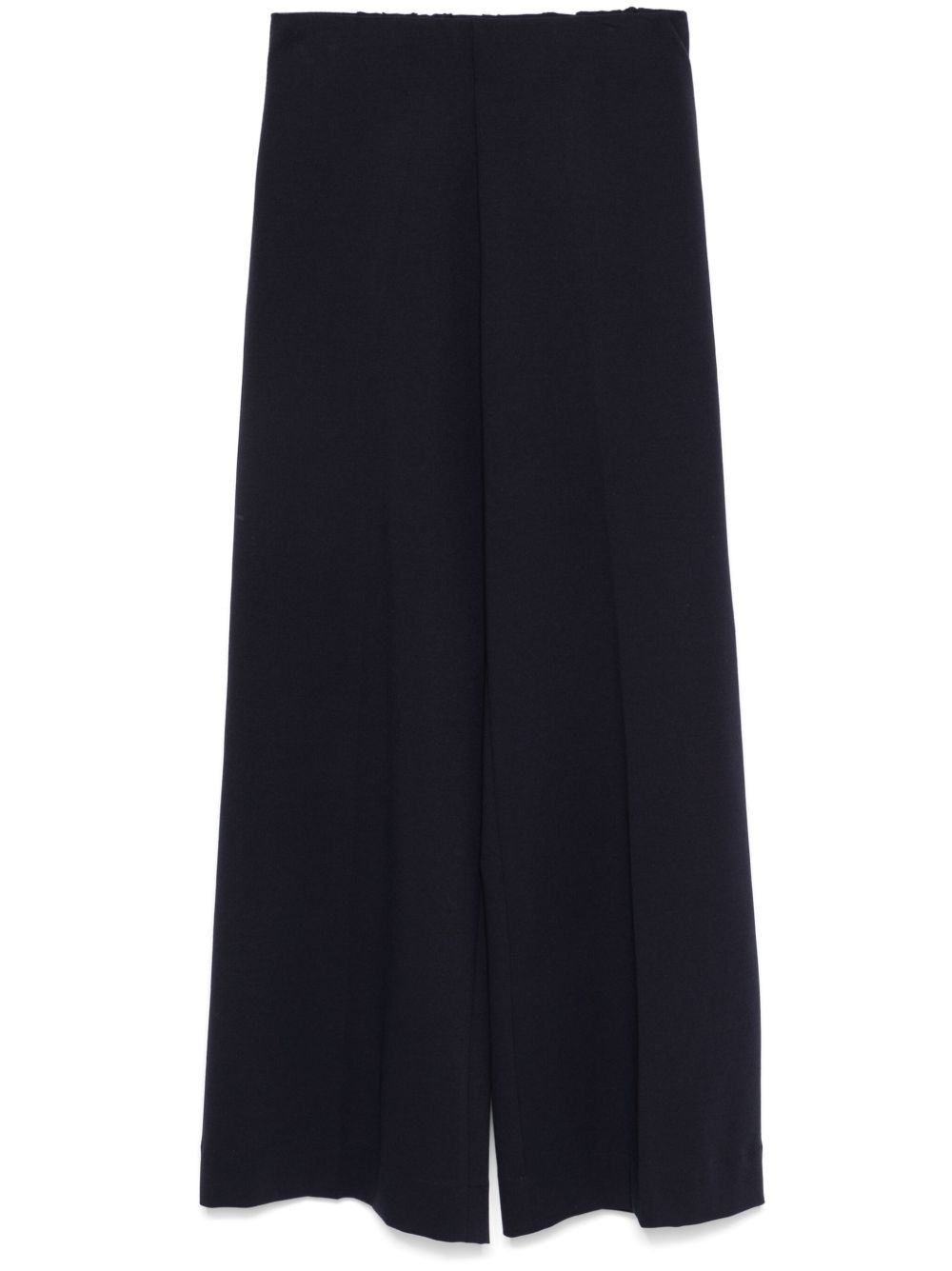 flared trousers Highlights - Navy blue - Elasticated waistband - Two side inset pockets - Pressed crease Made in Italy Composition Viscose 56%, Polyamide 36%, Elastane 8% SIZE & FIT Model measurements Height 5 ft 9 in(1.75 m) Bust/Chest 34.64 in(88 cm) Hips 36.61 in(93 cm) Waist 26.37 in(67 cm) FittingInformation Designed with a flared hem, these trousers allow for a close fit at the waist with a slim fit over the leg and widening towards the hem The elasticated waist allows for a comfortable fit Made from a midweight stretch fabric, this piece offers elasticity and flexibility when worn
