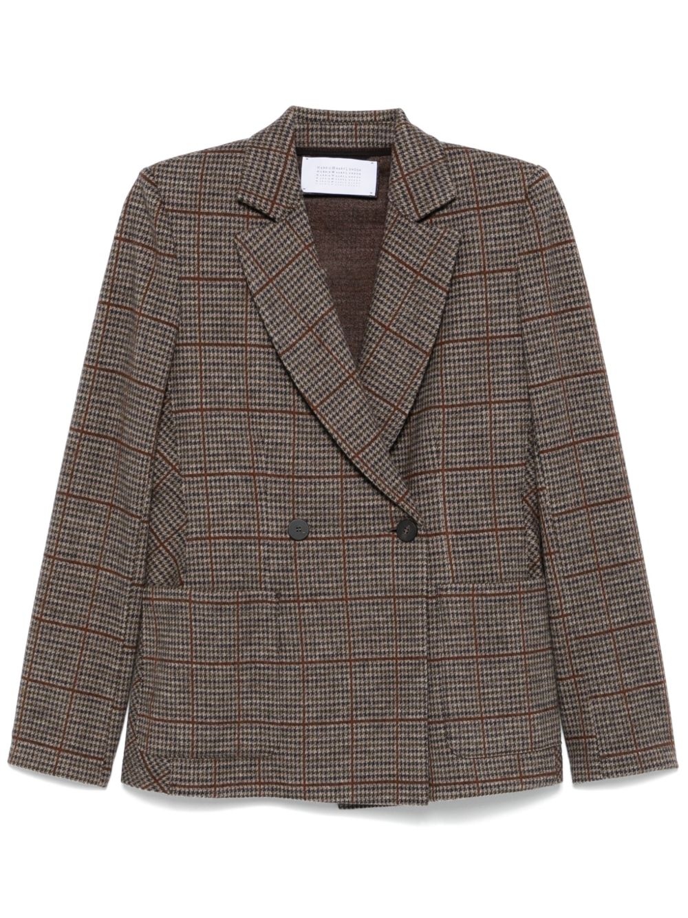 houndstooth-patterned blazer Highlights - Taupe brown - Virgin wool - Textured finish - Double-breasted button fastening - Houndstooth pattern - Check pattern - Notched lapels - Shoulder pads - Long sleeves - Two side patch pockets - Straight hem Made in Italy Composition Virgin Wool 100% SIZE & FIT Model measurements Height 5 ft 11 in(1.8 m) Bust/Chest 32.67 in(83 cm) Hips 35.03 in(89 cm) Waist 25.19 in(64 cm) FittingInformation Designed for a slim fit that sits just away from the body offering a close yet comfortable fit The internal shoulder pads offer a structured shape Made from a midweight non-stretch fabric