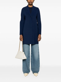 single-breasted scuba coat Highlights - Navy blue - Stretch-design - Soft scuba jersey - Wide notch lapels - Front press-stud fastening - Long sleeves - Two side slit pockets - Raw-cut hem - Unlined Made in Italy Composition Polyamide 72%, Elastane 28% SIZE & FIT Model measurements Height 5 ft 11 in(1.8 m) Bust/Chest 31.49 in(80 cm) Hips 36.61 in(93 cm) Waist 24.4 in(62 cm) FittingInformation Designed for a slim fit that sits just away from the body offering a close yet comfortable fit Made from a midweight stretch fabric, this piece offers elasticity and flexibility when worn This piece fits true to size – take your usual size
