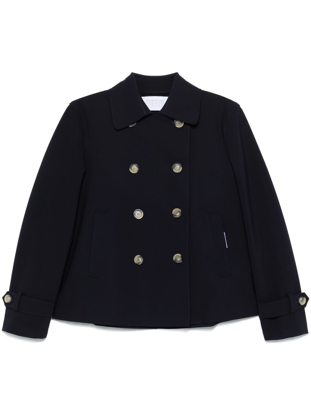 spread-collar jacket Highlights - Navy blue - Double-breasted button fastening - Long sleeves - Buttoned cuffs - Two side welt pockets Made in Italy Composition Polyamide 75%, Elastane 25% SIZE & FIT Model measurements Height 5 ft 10 in(1.79 m) Bust/Chest 31.88 in(81 cm) Hips 35.43 in(90 cm) Waist 23.62 in(60 cm) FittingInformation Designed for a relaxed fit, this piece allows for comfort and movement when worn Made from a midweight stretch fabric, this piece offers elasticity and flexibility when worn