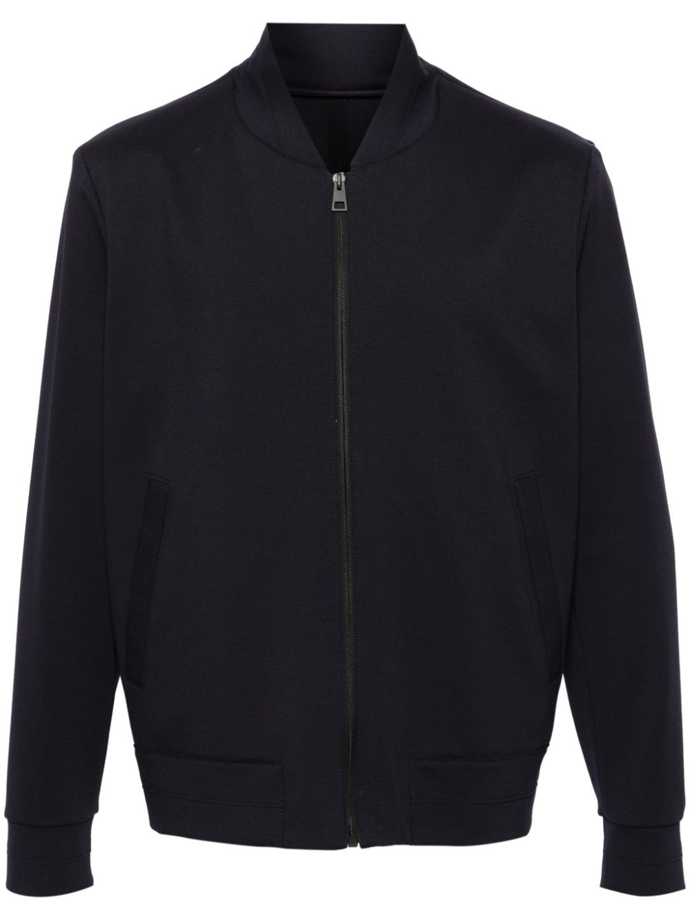 stretch-jersey bomber jacket Highlights - Navy blue - Stretch-jersey - Interlock weave - Baseball collar - Front zip fastening - Long sleeves - Two side welt pockets - Straight hem - Unlined Made in Italy Composition Viscose 56%, Polyamide 36%, Elastane 8% SIZE & FIT Model measurements Height 6 ft 2 in(1.87 m) Bust/Chest 37.79 in(96 cm) Hips 37.79 in(96 cm) Waist 30.31 in(77 cm) FittingInformation Designed for a relaxed fit, this piece allows for comfort and movement when worn The ribbed hem offers a close, comfortable fit Made from a midweight non-stretch fabric, this piece offers minimal elasticity when worn This piece fits true to size – take your usual size